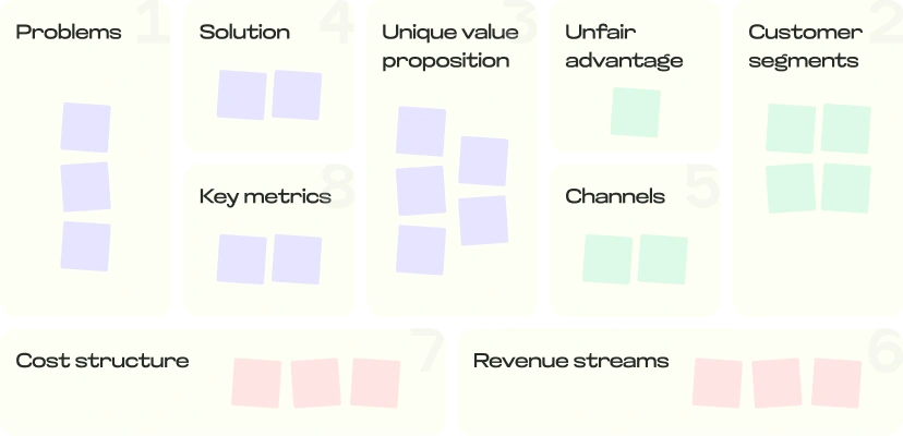 The lean canvas collaboratively developed by the team was the starting point of the journey.