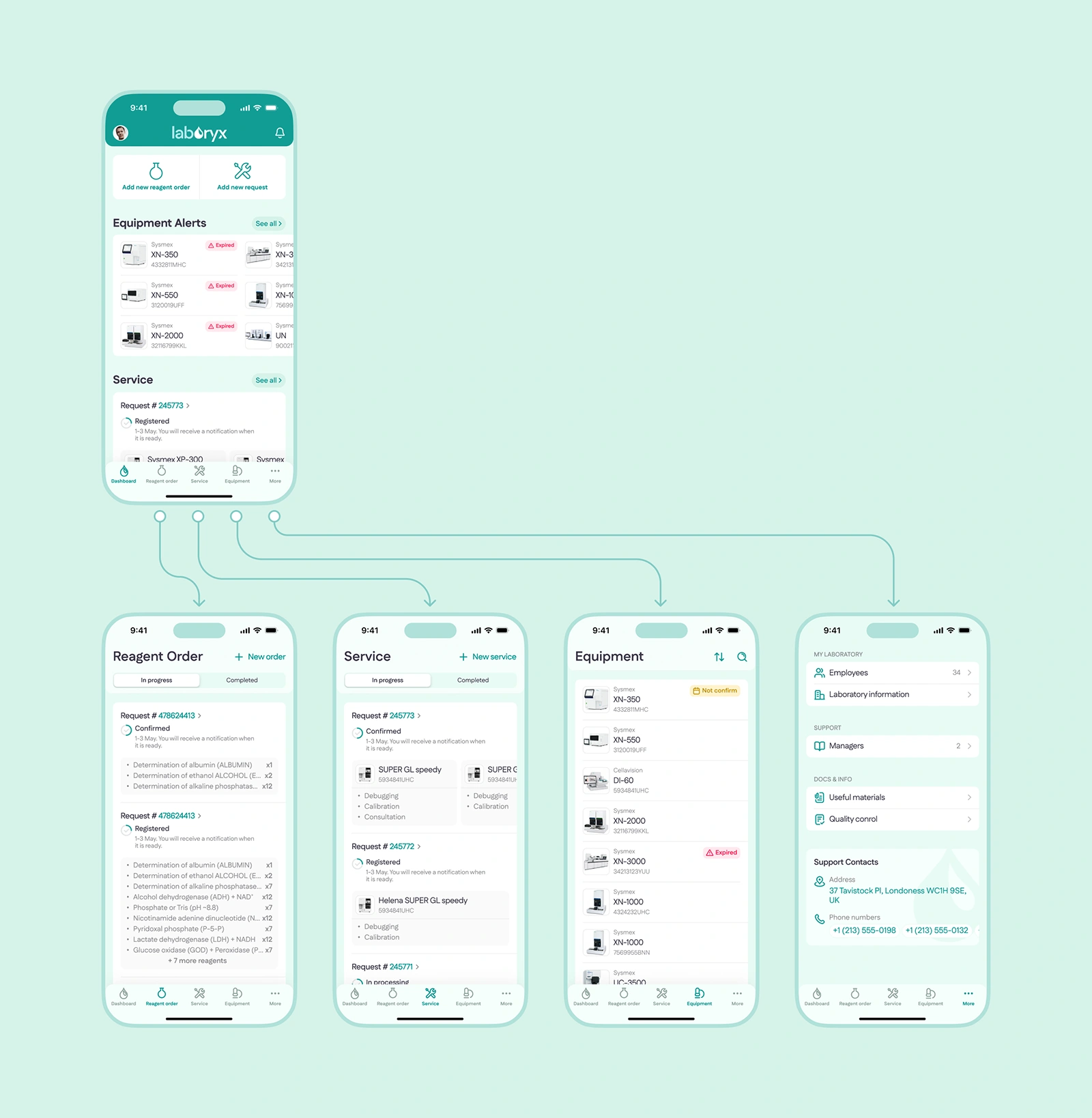 Laboryx is a mobile application for managing laboratory equipment, maintenance services, and reagent orders.